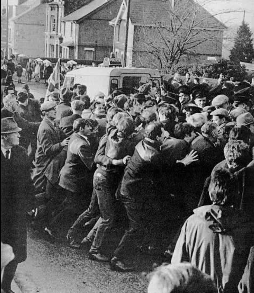 The attack of Civil Rights demonstrators at Burntollet Bridge was a major starting point for civil unrest during The Troubles. The event had started on the morning of January 1st outside Belfast City Hall, organized by students to hold a long protest march from Belfast to Derry. They were protesting for a variety of reasons such as equal voting rights, improved public housing, and in order to fight Northern Irish laws that restricted individual freedoms. In short, the 4-day march was meant to protest for Civil Rights, inspired by the new form of peaceful protest that was garnering worldwide attention in the American south. The entire procession of the march was one long ordeal characterized by harassment and cooperation between police and civilians to deter the protestors until things finally came to a head at Burntollet Bridge. The protest attempted to recreate what had been achieved in other parts of the world, but sadly failed to yield productive results in terms of peace.